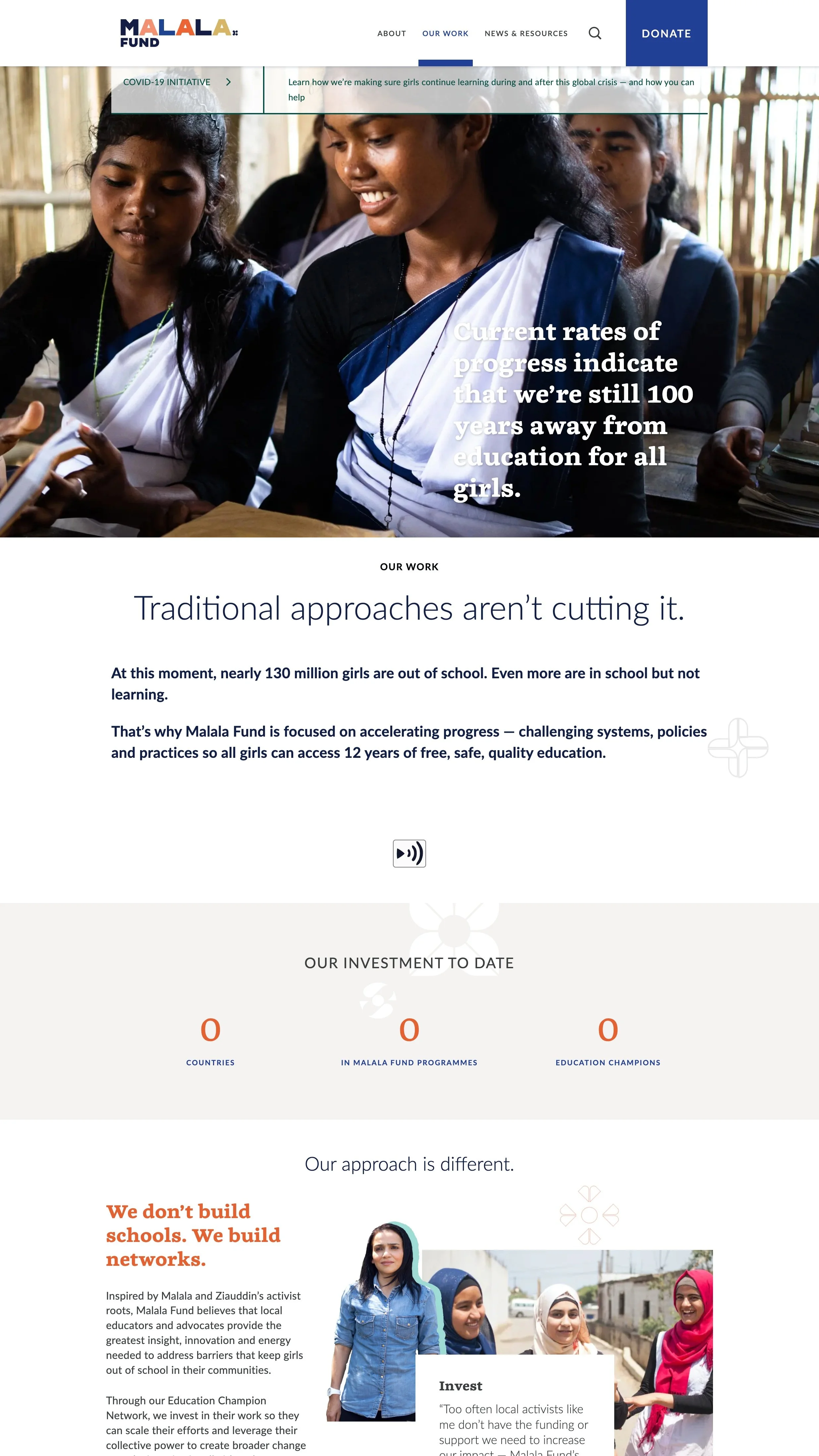 When users arrive at malala.org, they should easily make the connection between the Nobel laureate’s story and the organization’s mission.